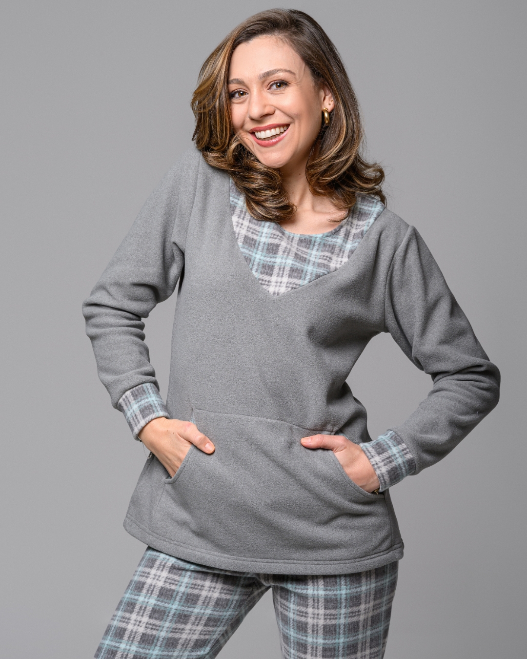 Nosso pijama em malha Microsoft envolve o corpo com maciez e conforto incomparáveis — quentinho como um abraço. O modelo traz bolso frontal cheio de charme.